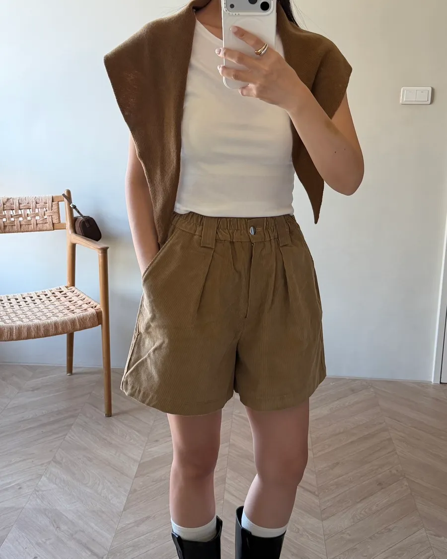 (現貨)A18秋冬必備燈芯絨鬆緊A字短褲
