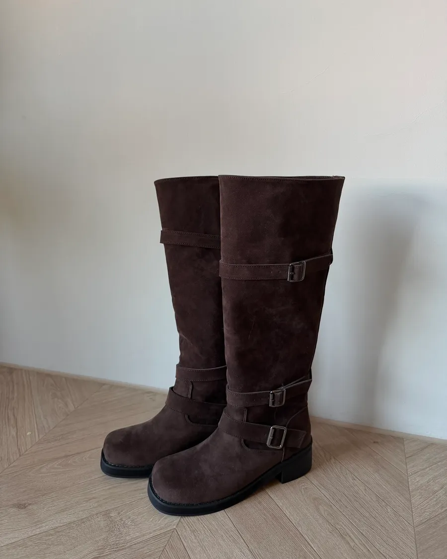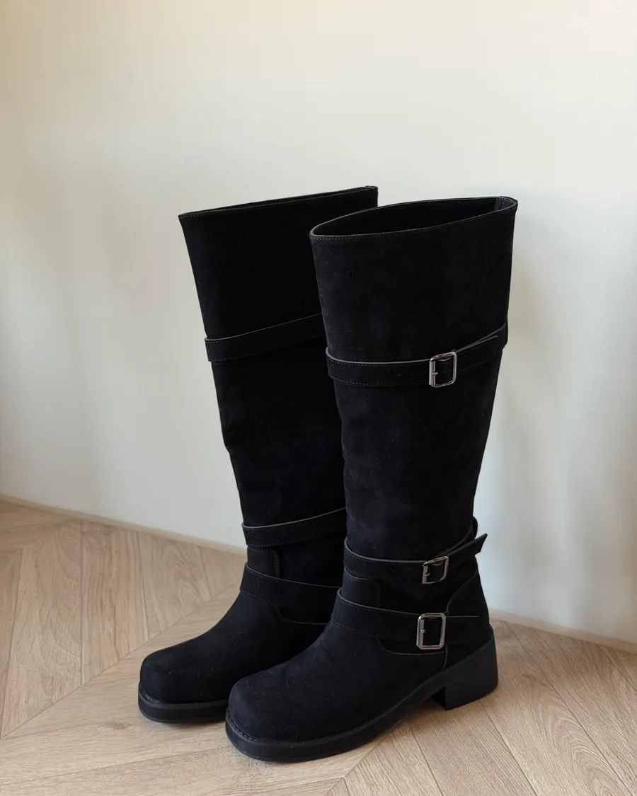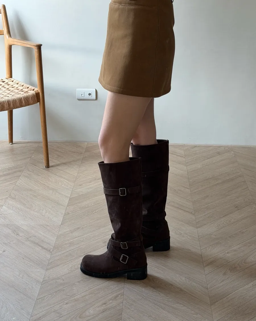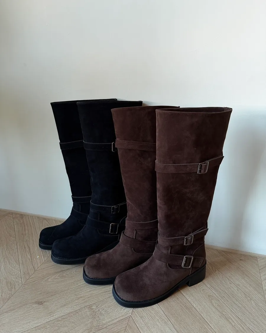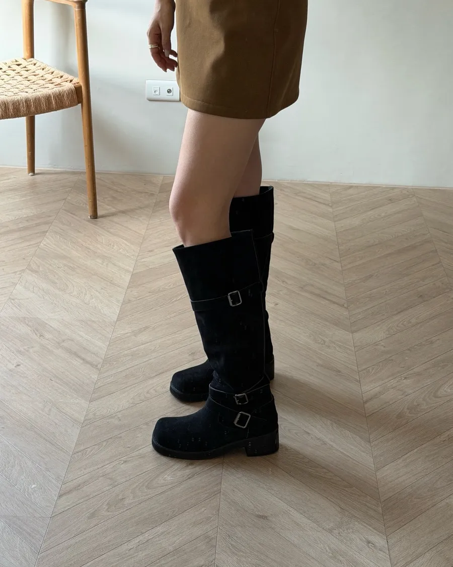 A31莫爾麂皮雙扣長靴