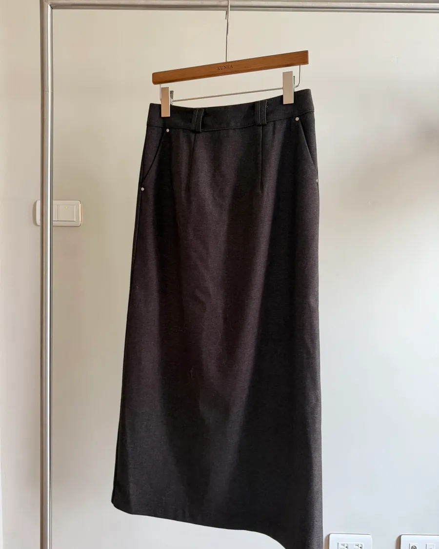 (現貨)C06霧色修身厚磅直筒長裙