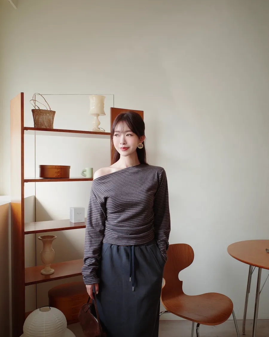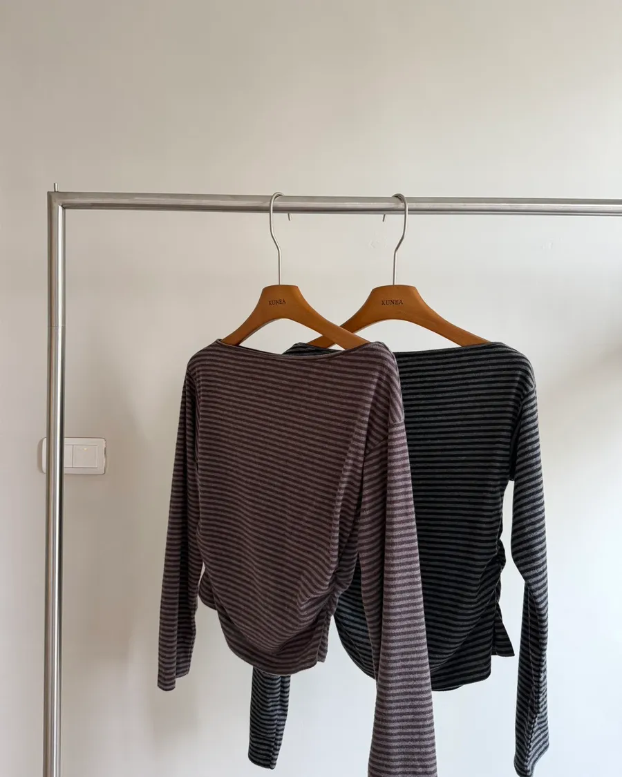 (現貨)C12低調細條紋微斜肩領上衣