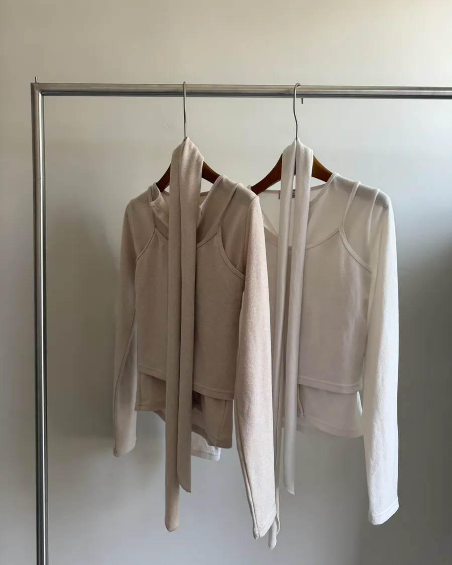 D01法式溫柔修身多穿綁帶針織SET