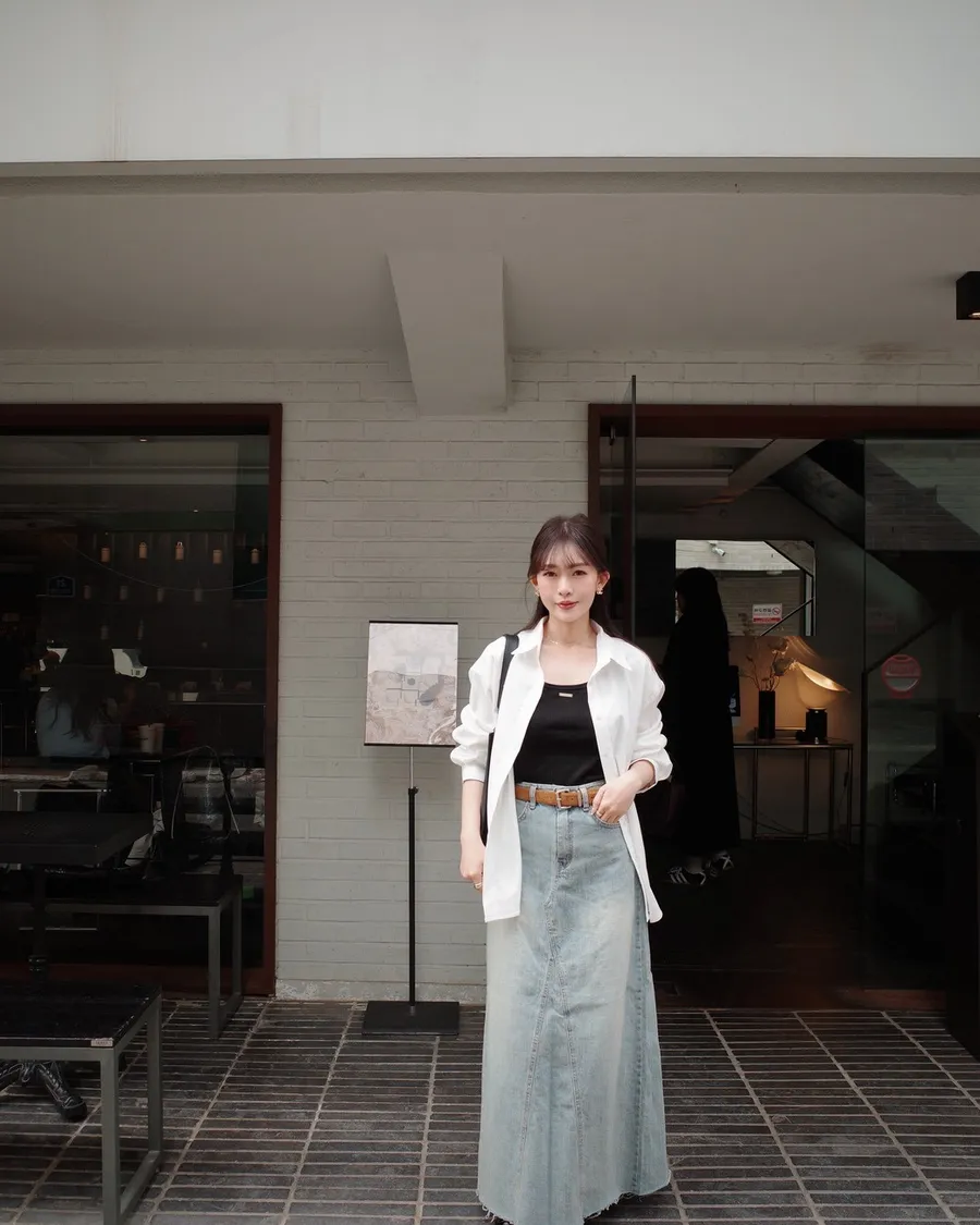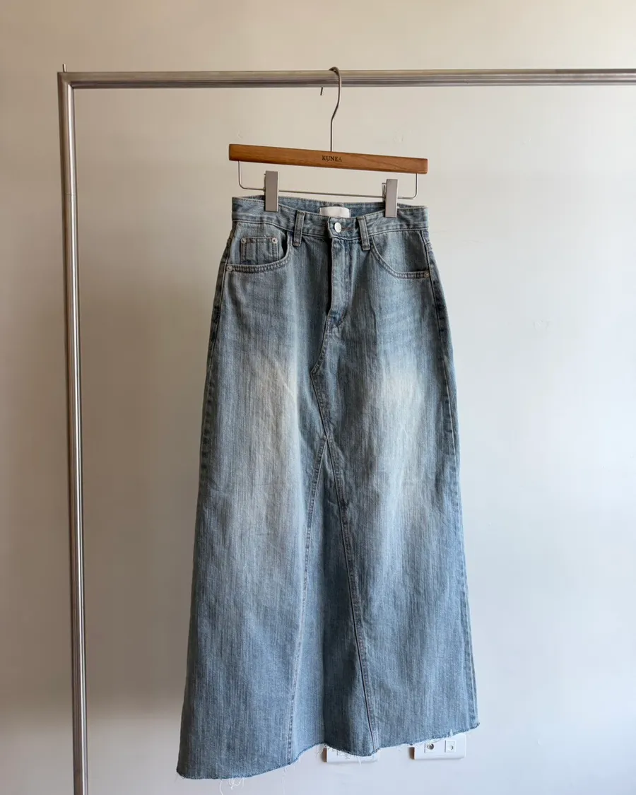 D17霧藍刷色單寧A字牛仔裙